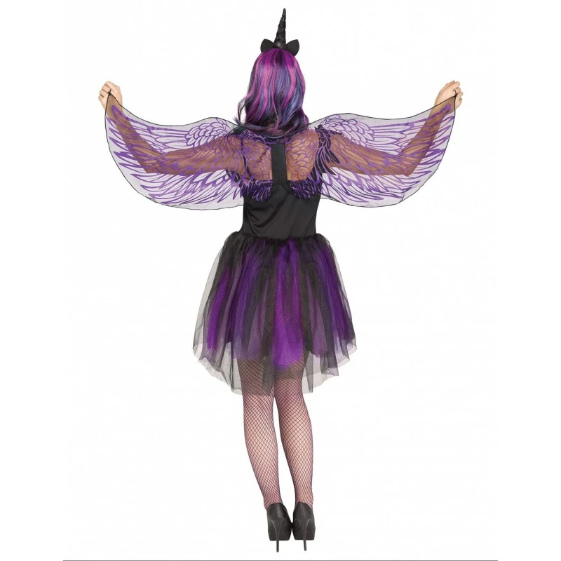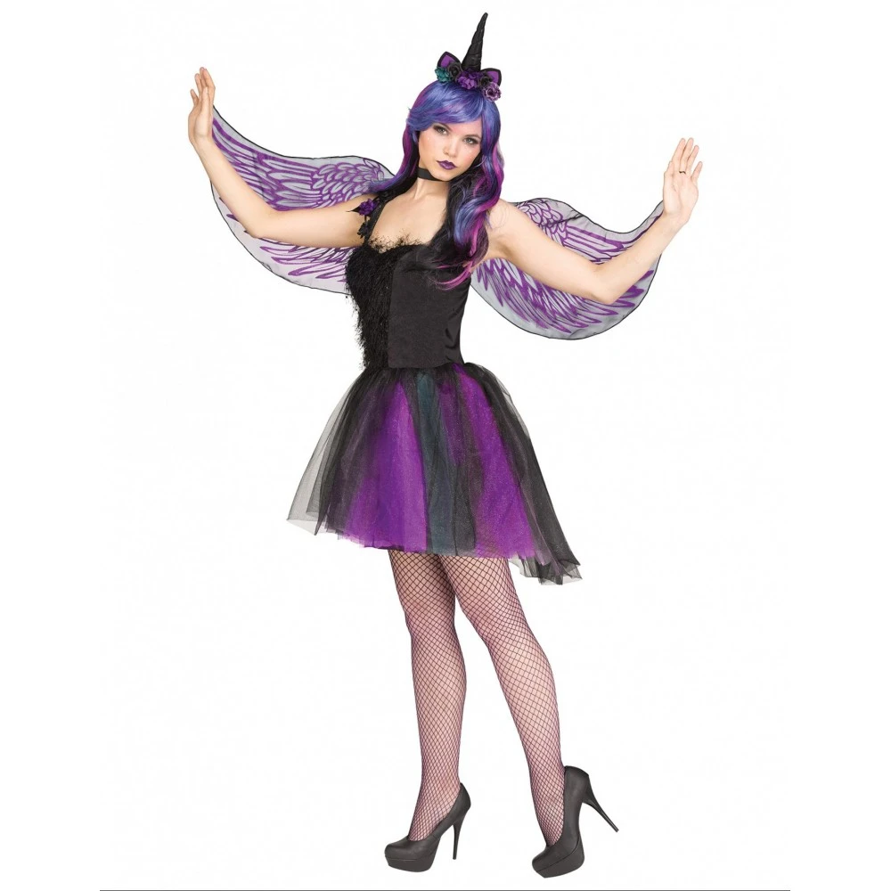 Dieses Kostüm als Mitternachtseinhorn für Frauen besteht aus einem Kleid, Stoffflügeln und einem Haarreif mit einem Horn. Es ist perfekt als Kostüm für eine Halloween- oder Karnevalsparty.Das Kostüm in Größe S-M entspricht US-Kleidergröße 2-8. Es eignet sich für Frauen mit einem Brustumfang zwischen 81 und 92 cm und Taillenumfang zwischen 60 und 68 cm.
