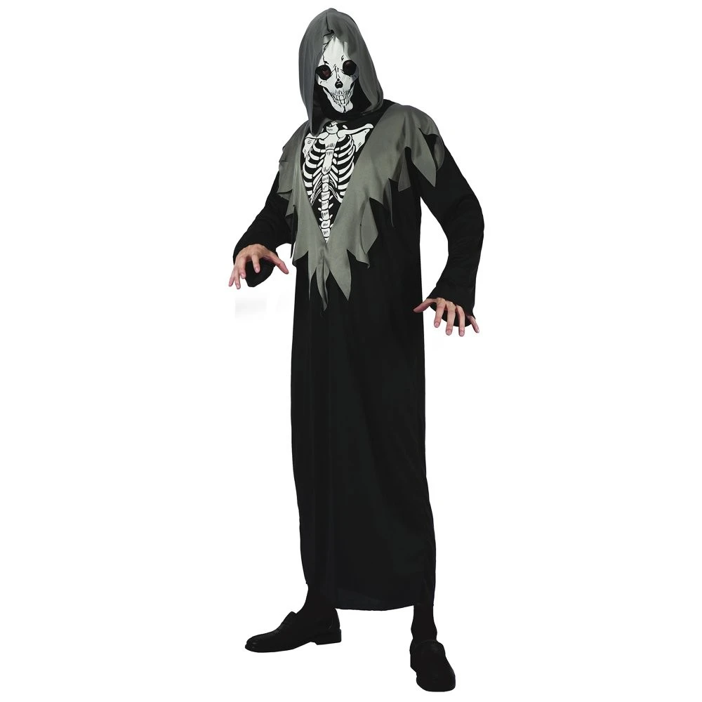 Skelettkostüm für Männer, bestehend aus einer schwarzen Tunika mit einem Teil der Brust, der mit den Knochen der Rippen bedruckt ist, und einer grauen Kapuze. Perfekt für Halloween!Enthält: Tunika und KapuzeZusammensetzung: 100% PolyesterPflege: Handwäsche / Kein Bleichmittel verwenden / Bei 110ª bügeln / Nicht trocknergeeignet / von Feuer und offenem Licht fernhalten.
